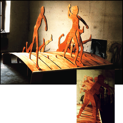 Interaktives, figurales Holz-Objekt. Bewegungsstudie in Originalgröße.